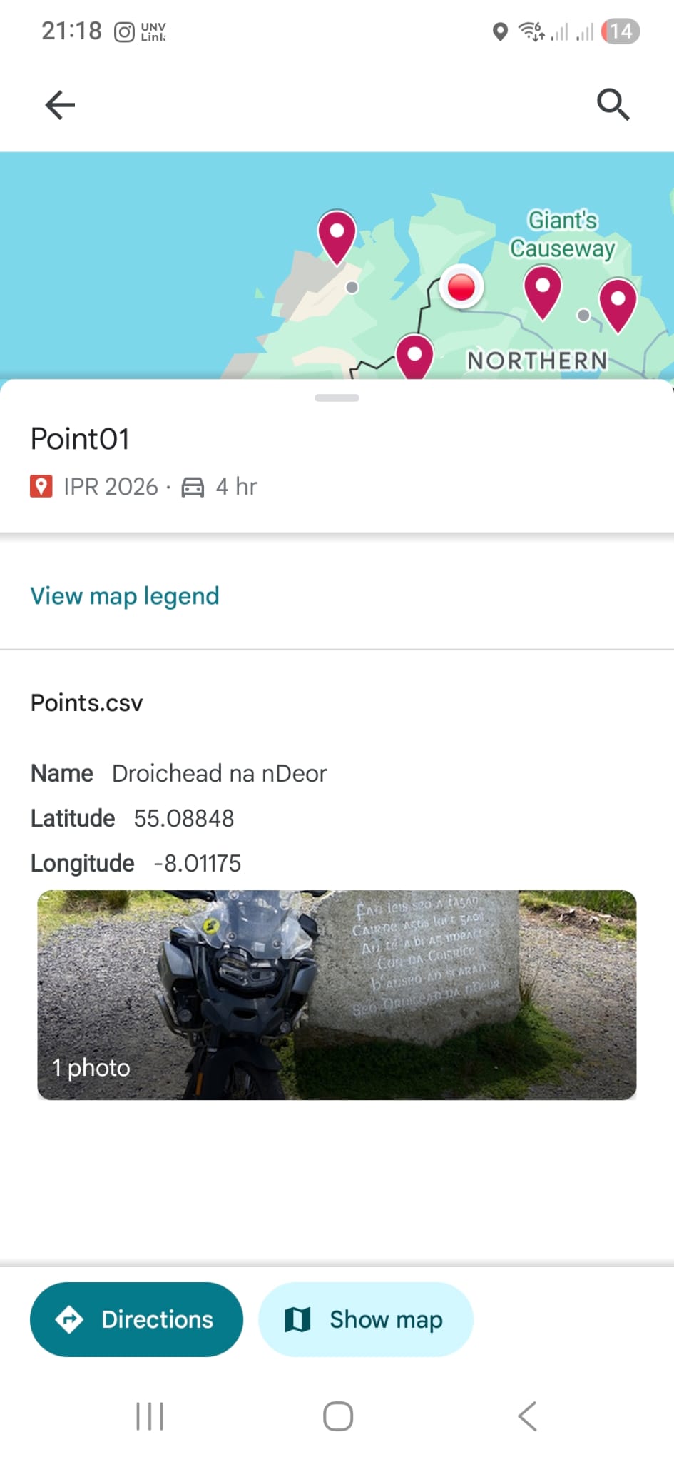 Note: When you open the map on Google Maps, you can now click on any point and use the ‘more info’ to see the photo of the point selected. Like this